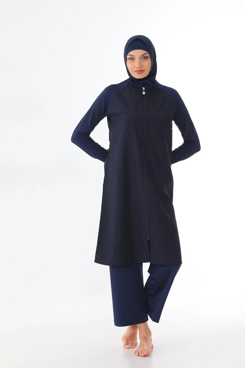 Elif Okur Tam Kapalı Mikro Tesettür Mayo Lacivert