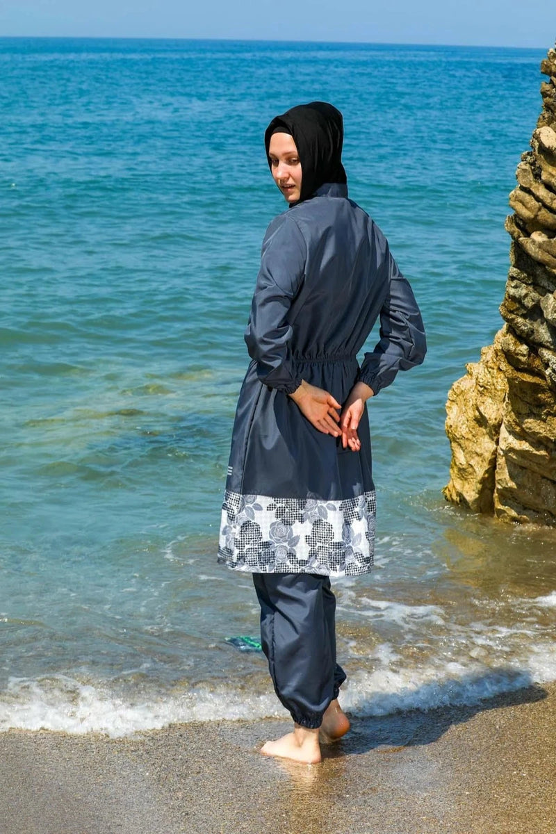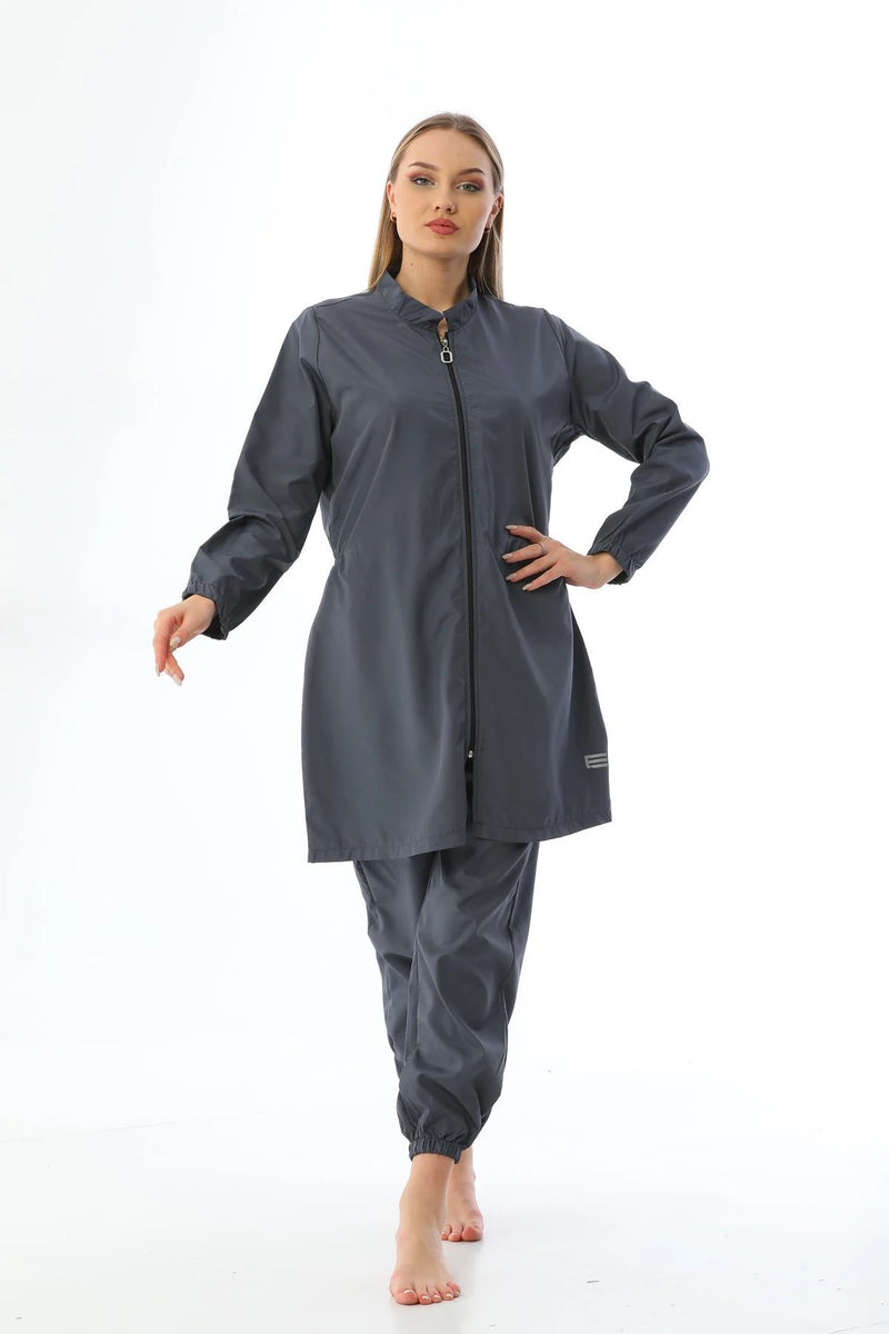 Elif Okur Tam Kapalı Mikro Tesettür Mayo Gri