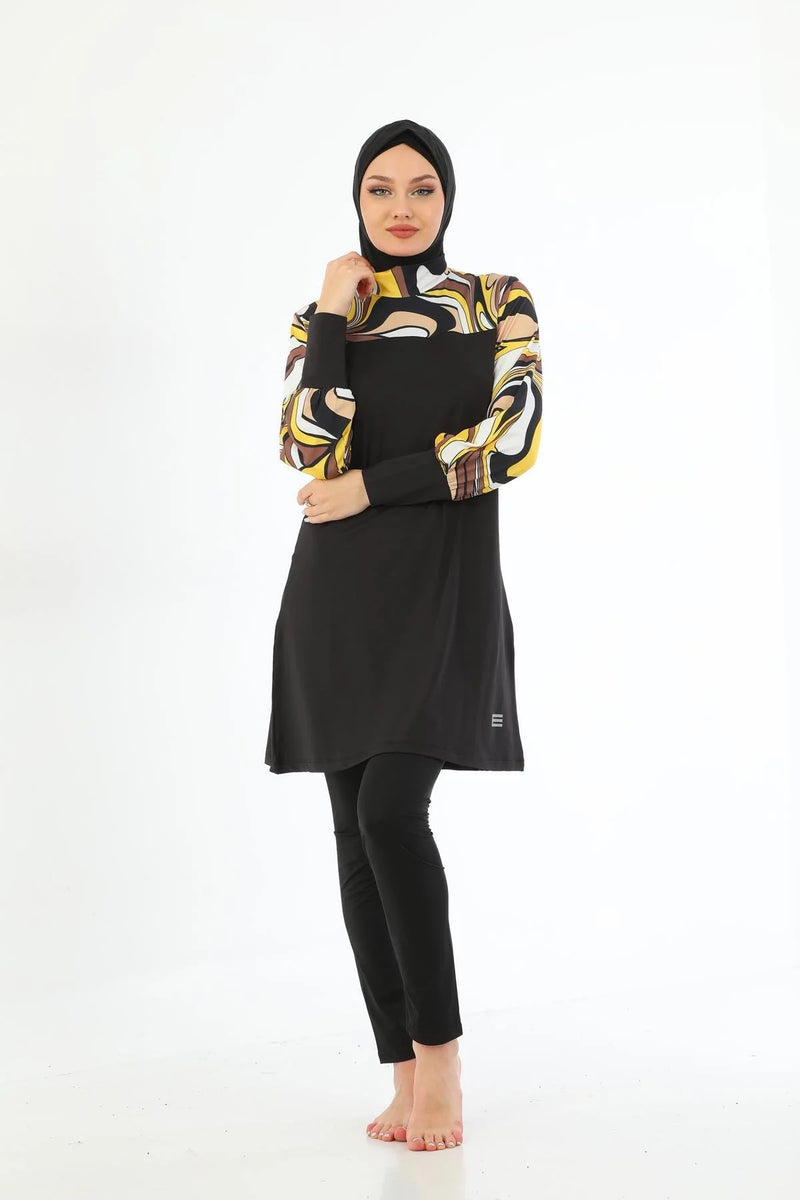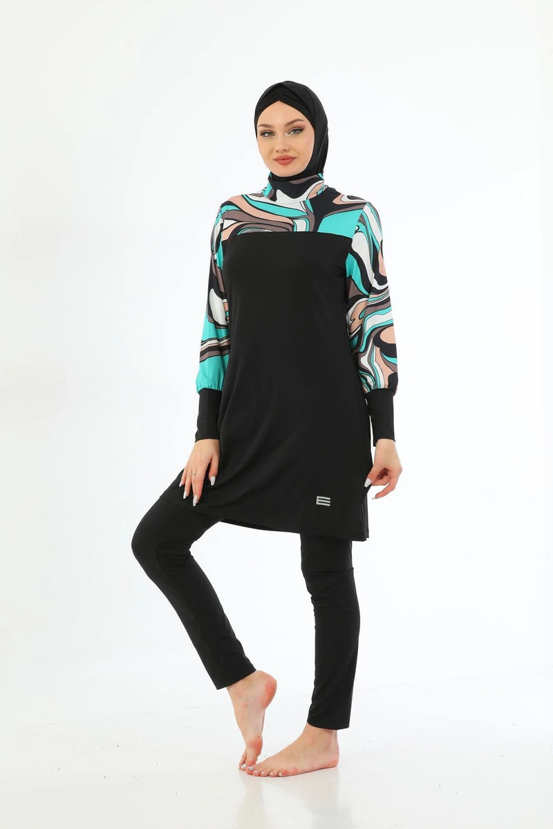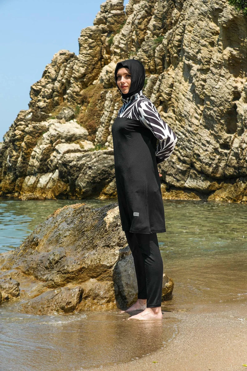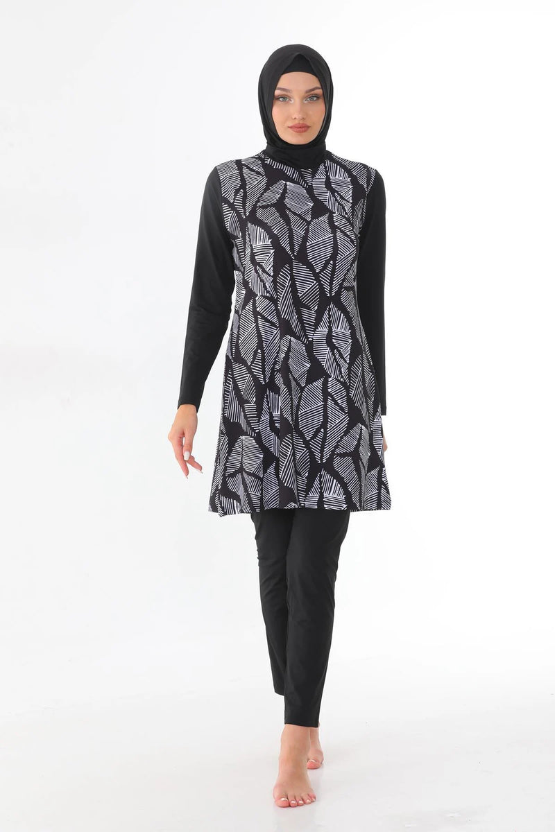Elif Okur Tam Kapalı Tesettür Mayo Siyah Batik