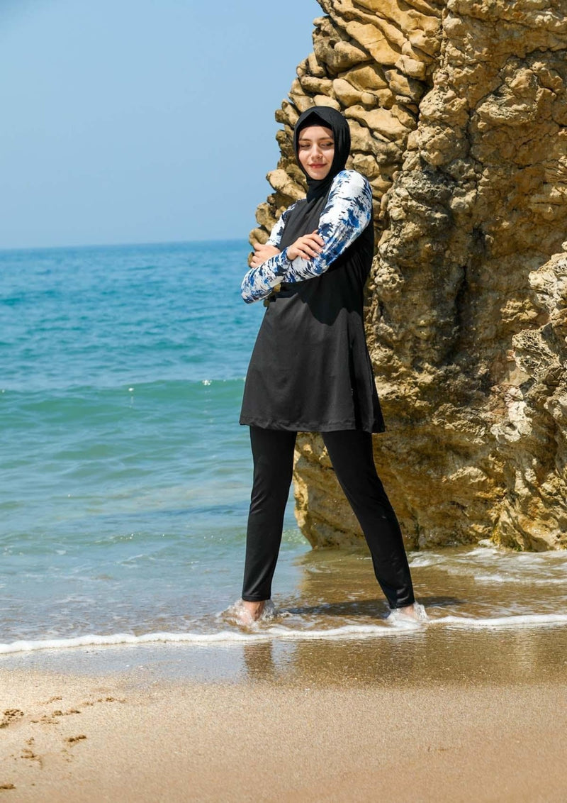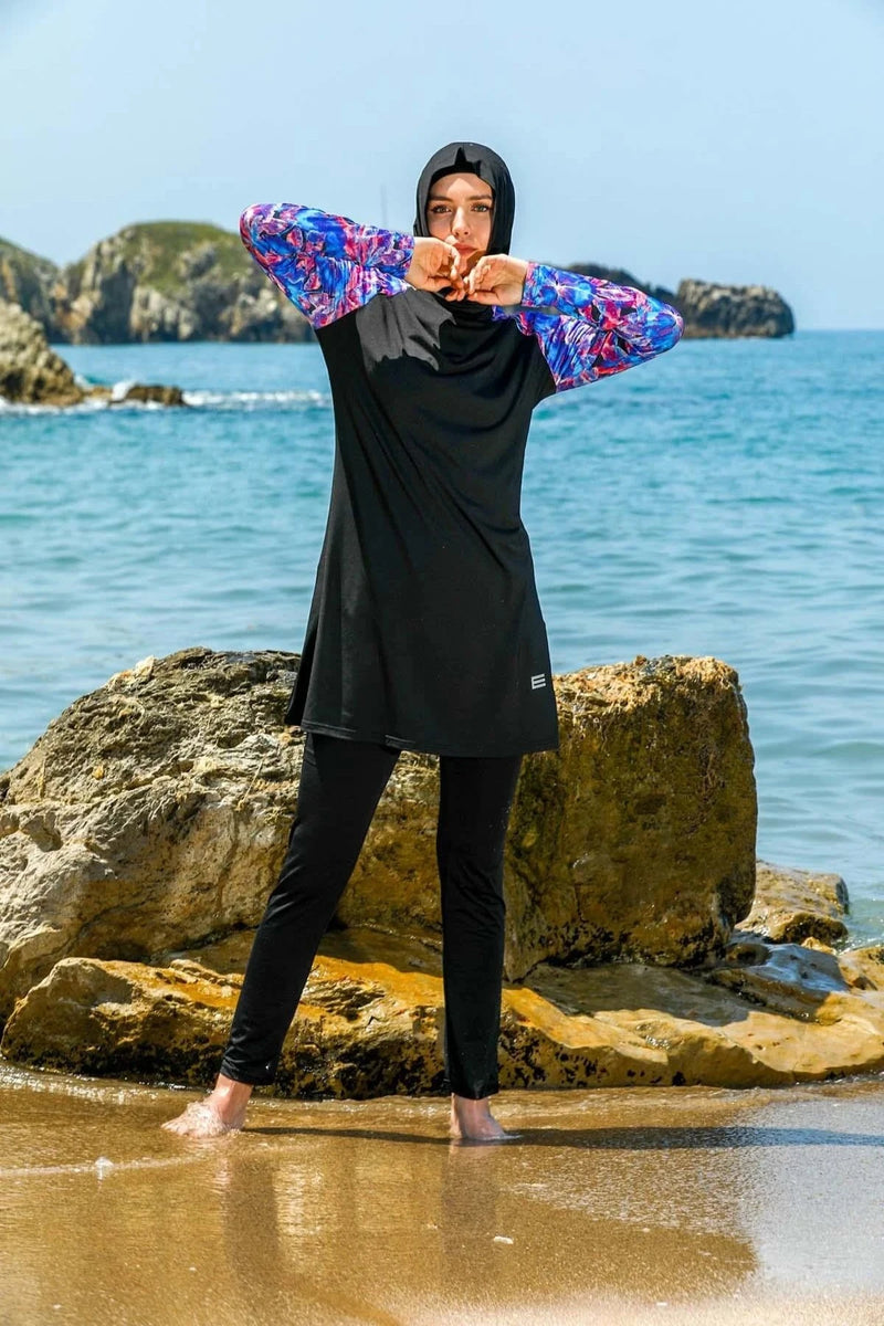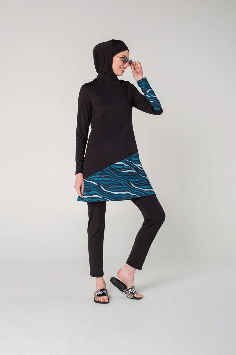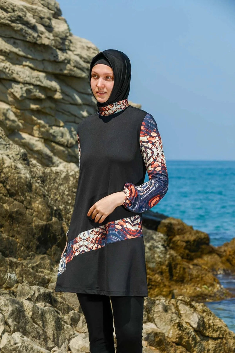 Elif Okur Tam Kapalı Tesettür Mayo Siyah Batik