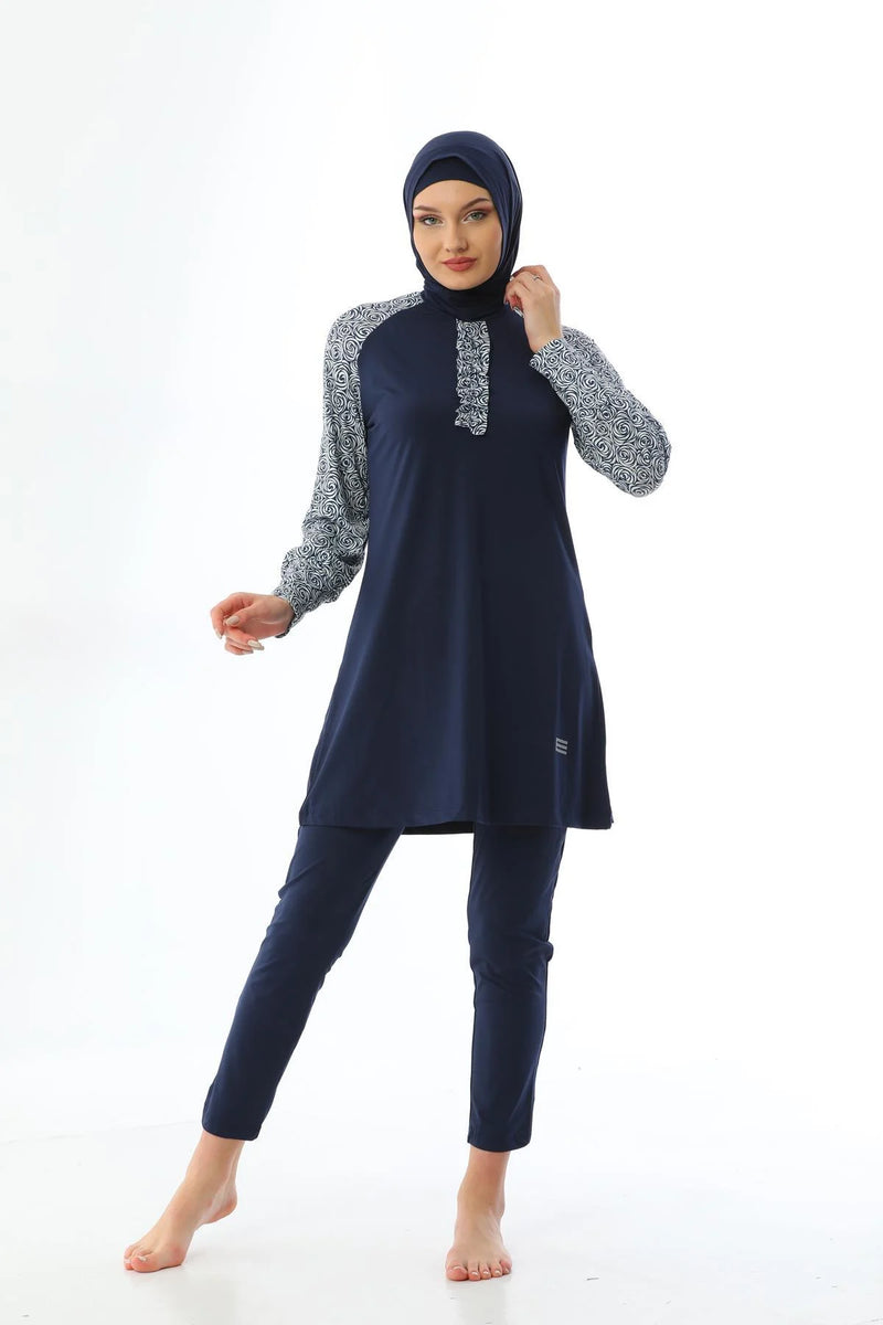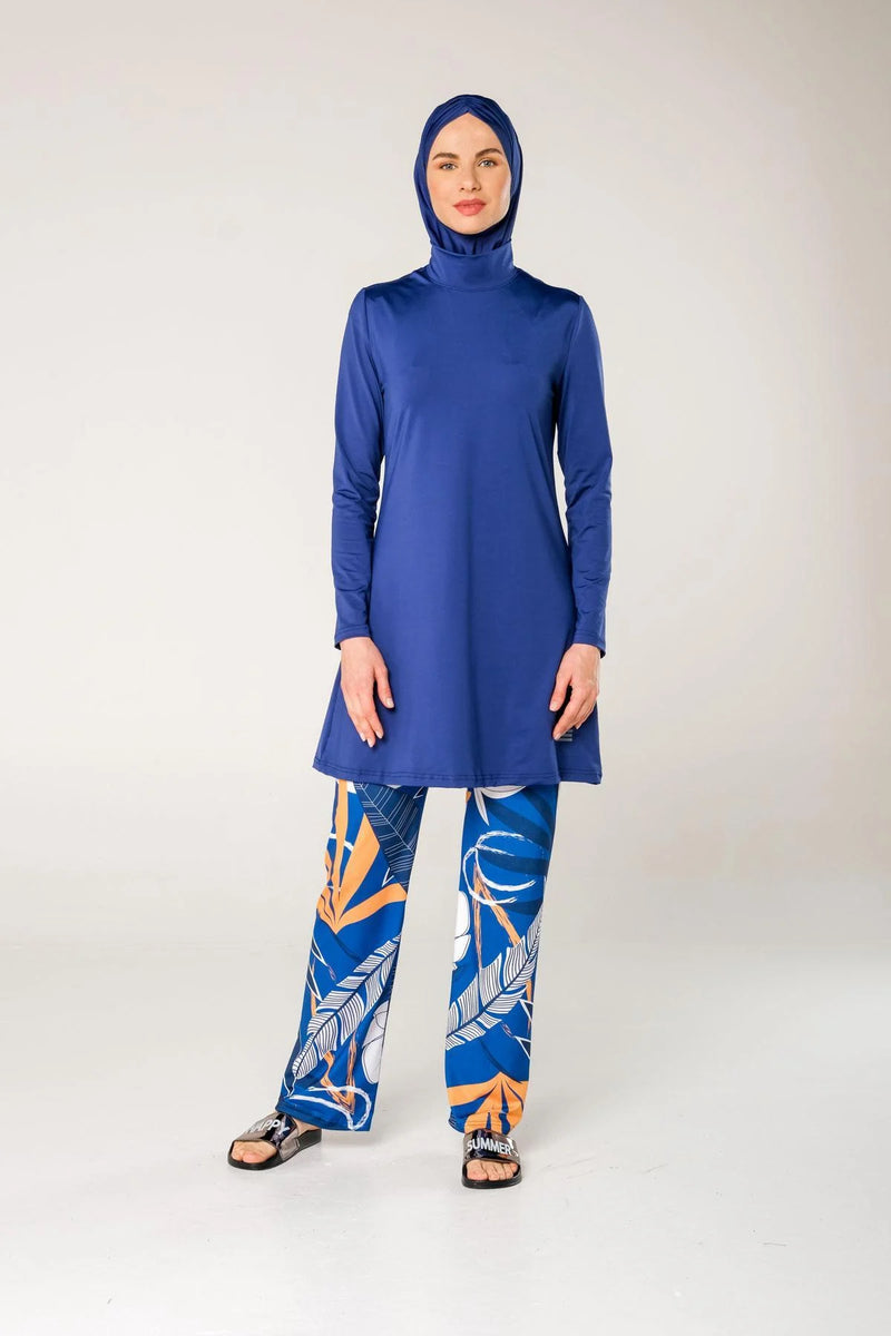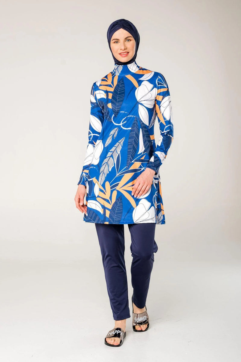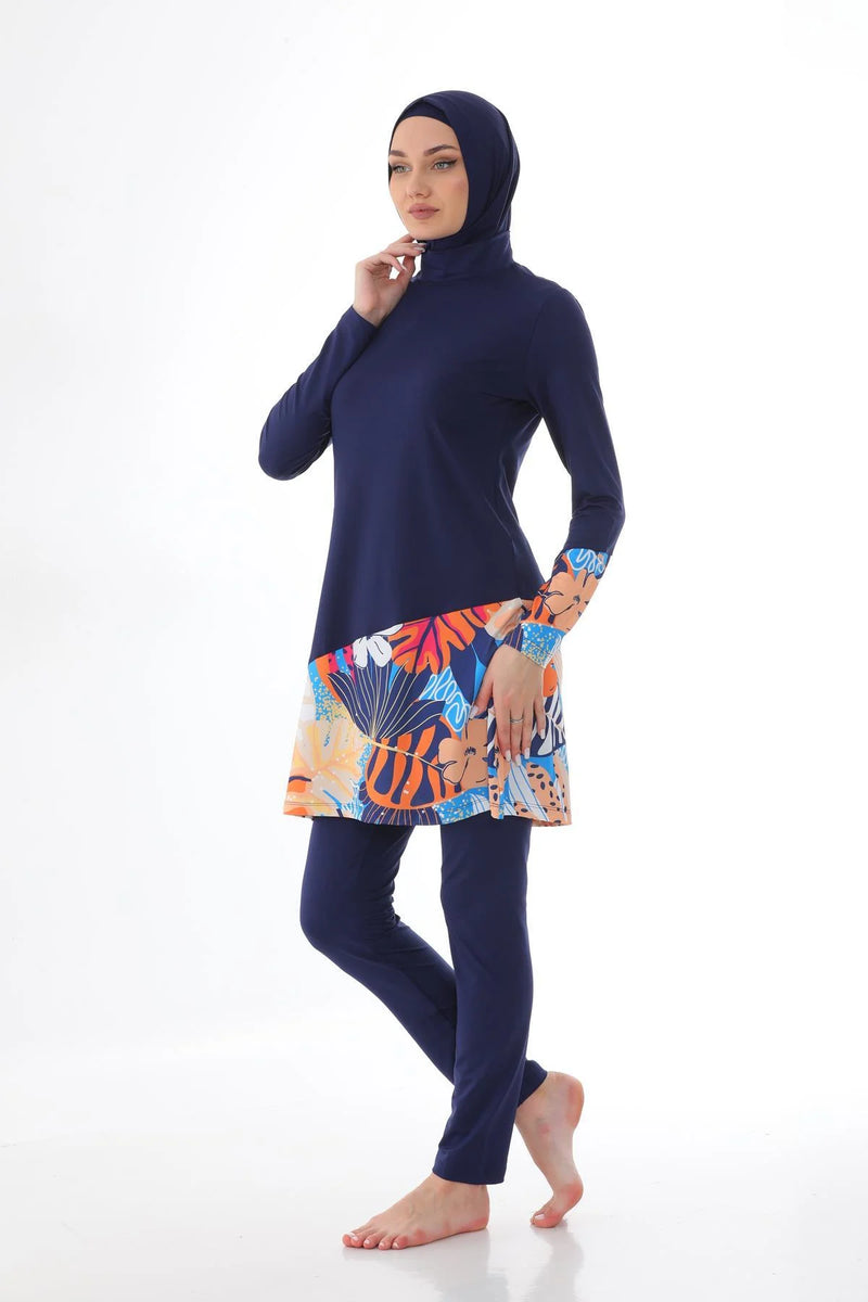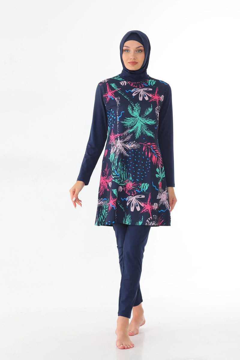 Elif Okur Tam Kapalı Tesettür Mayo Lacivert Tropik
