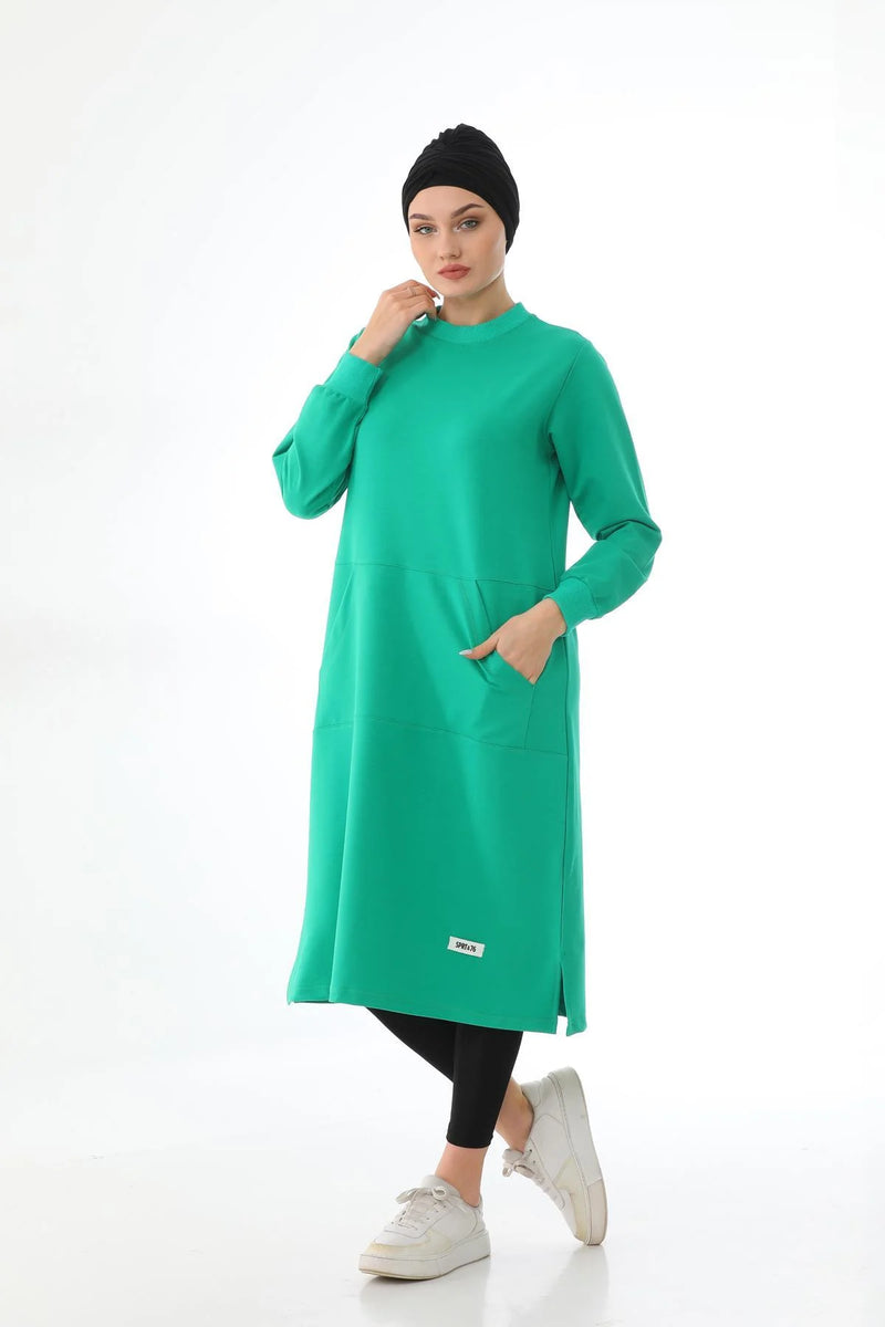 Elif Okur Tesettür Cepli Uzun Tunik Yeşil
