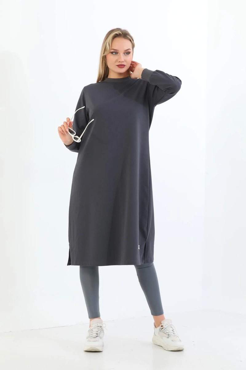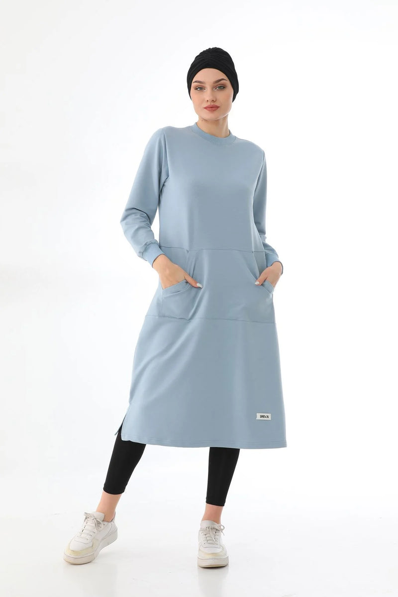 Elif Okur Tesettür Cepli Uzun Tunik Bebe Mavisi