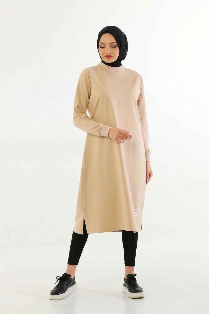 Elif Okur Tesettür Uzun Tunik Açık Bej