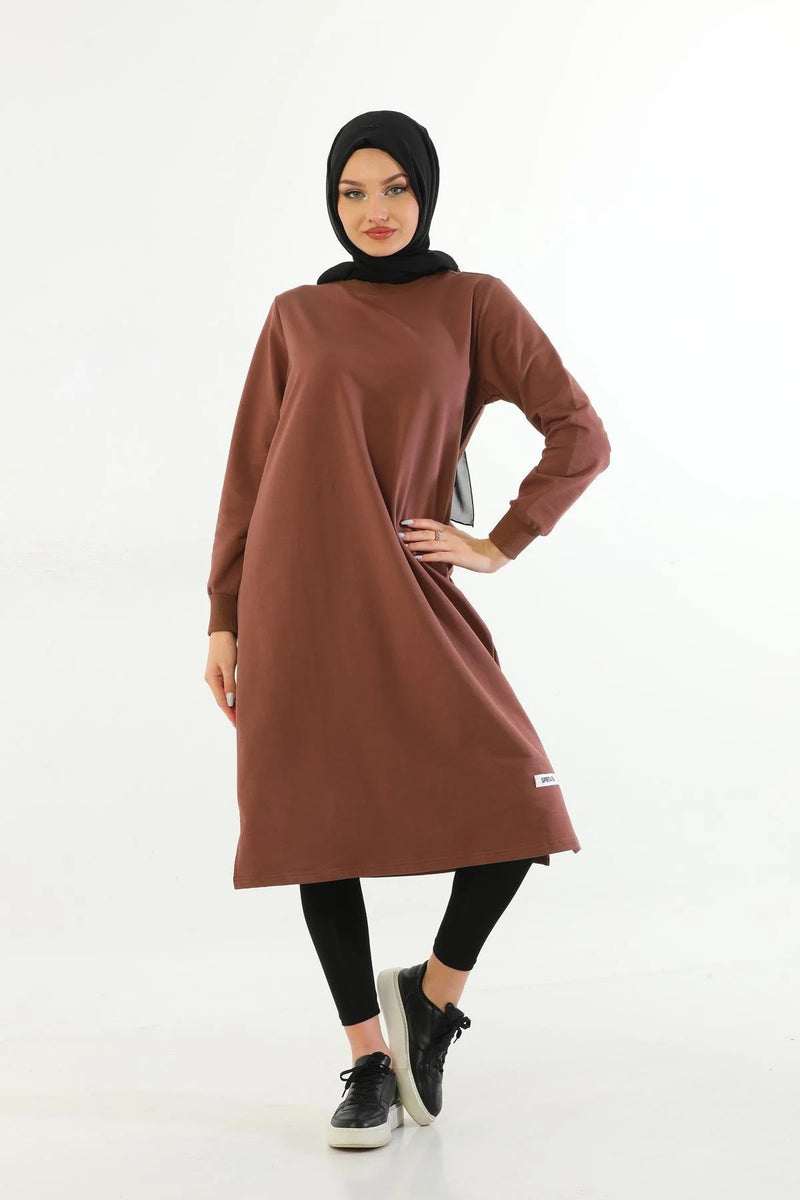 Elif Okur Tesettür Uzun Tunik Kahverengi