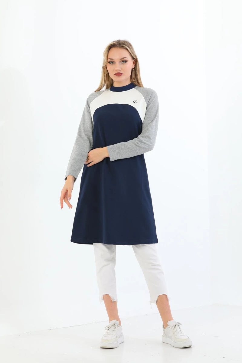 Elif Okur Tesettür Uzun Tunik Lacivert Gri