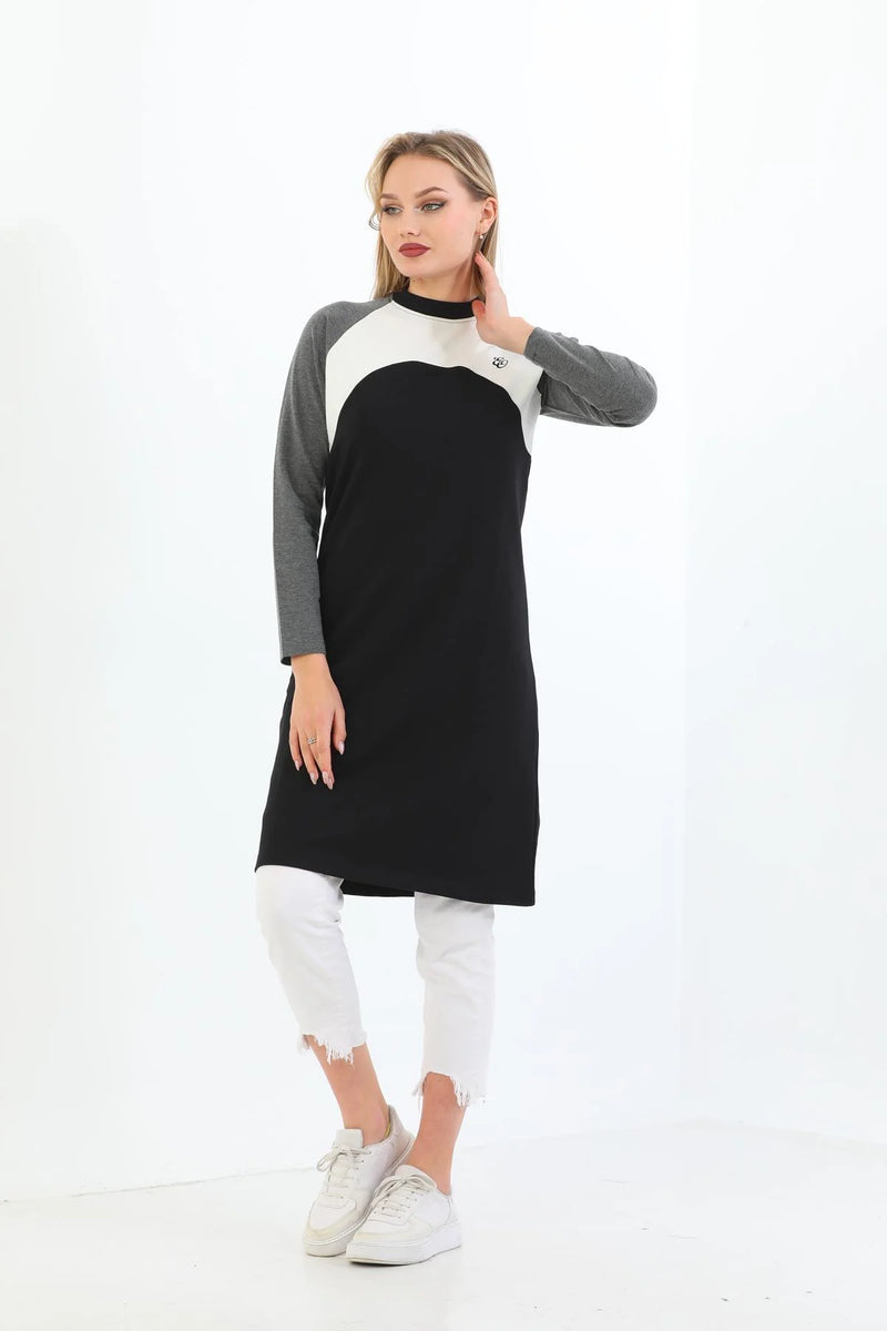 Elif Okur Tesettür Uzun Tunik Siyah Beyaz
